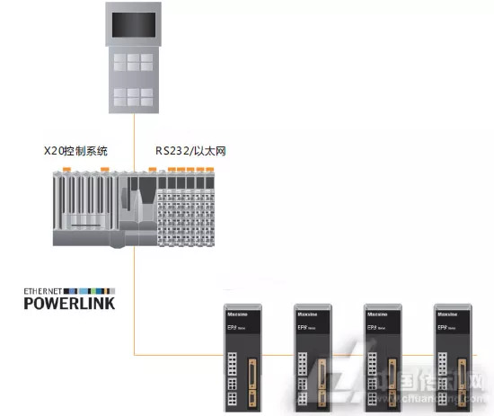 通過(guò)對(duì)客戶(hù)需求的深入分析,我們?yōu)榭蛻?hù)設(shè)計(jì)了“B&R的X20控制器+EP3E伺服驅(qū)動(dòng)器”的電控解決方案,如圖2所示。