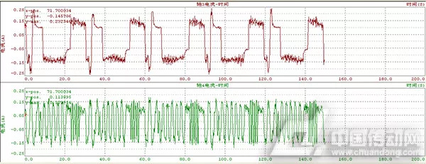 圖5、SCARA機(jī)器人各軸工作電機(jī)電流的trace數(shù)據(jù)